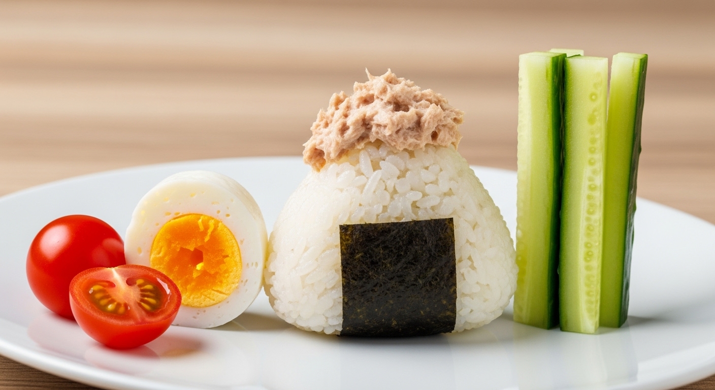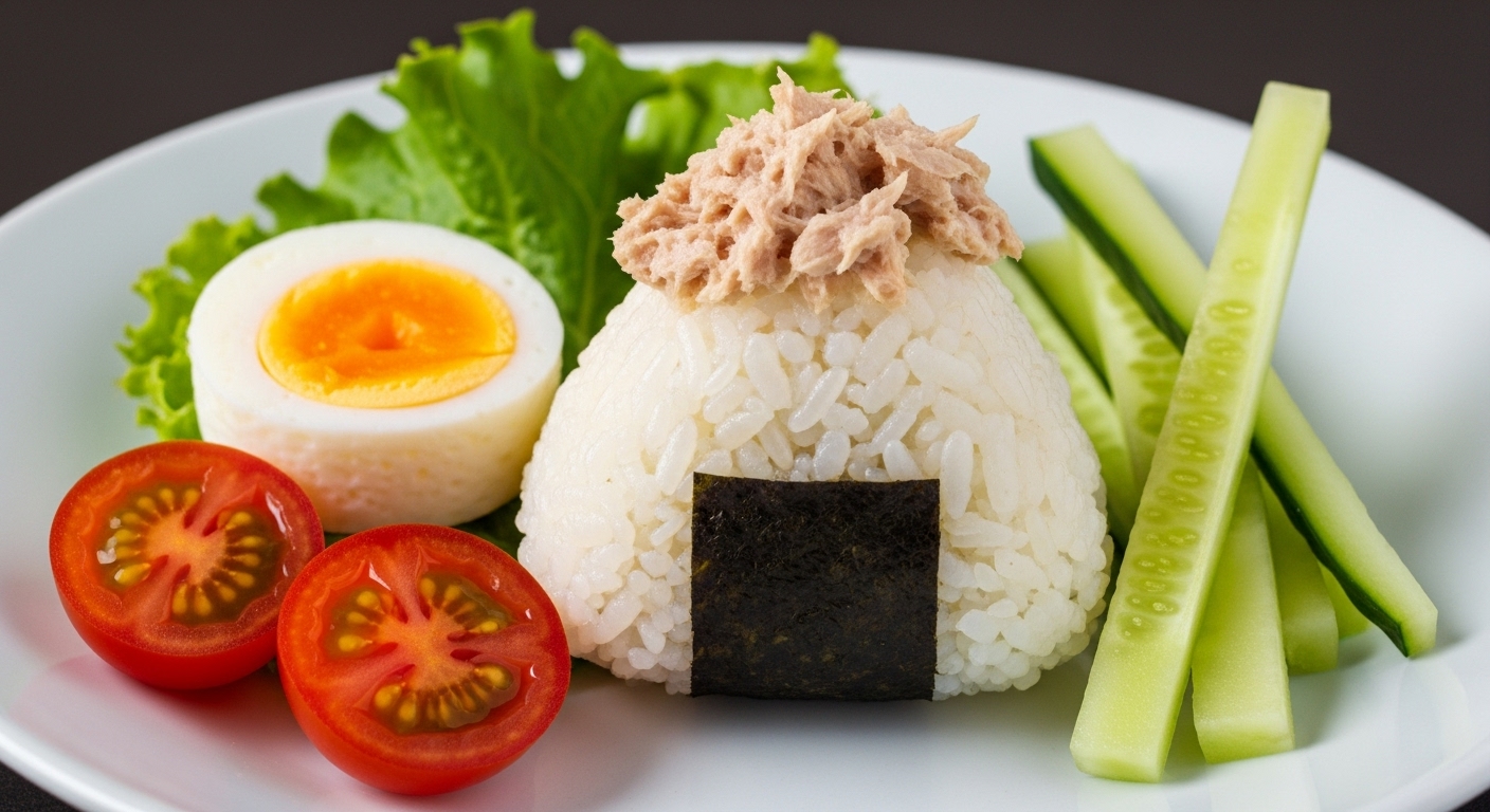 구성: 참치 마요 주먹밥 + 계란말이 + 방울토마토 + 오이스틱