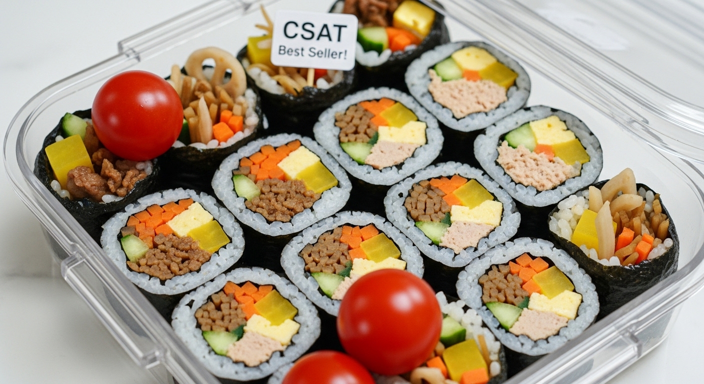 수능 도시락의 베스트셀러! 한 입 크기로 먹기 편하고, 다양한 재료가 들어가 영양도 풍부합니다. 참치, 소고기, 햄 등 취향에 맞게 선택하세요.