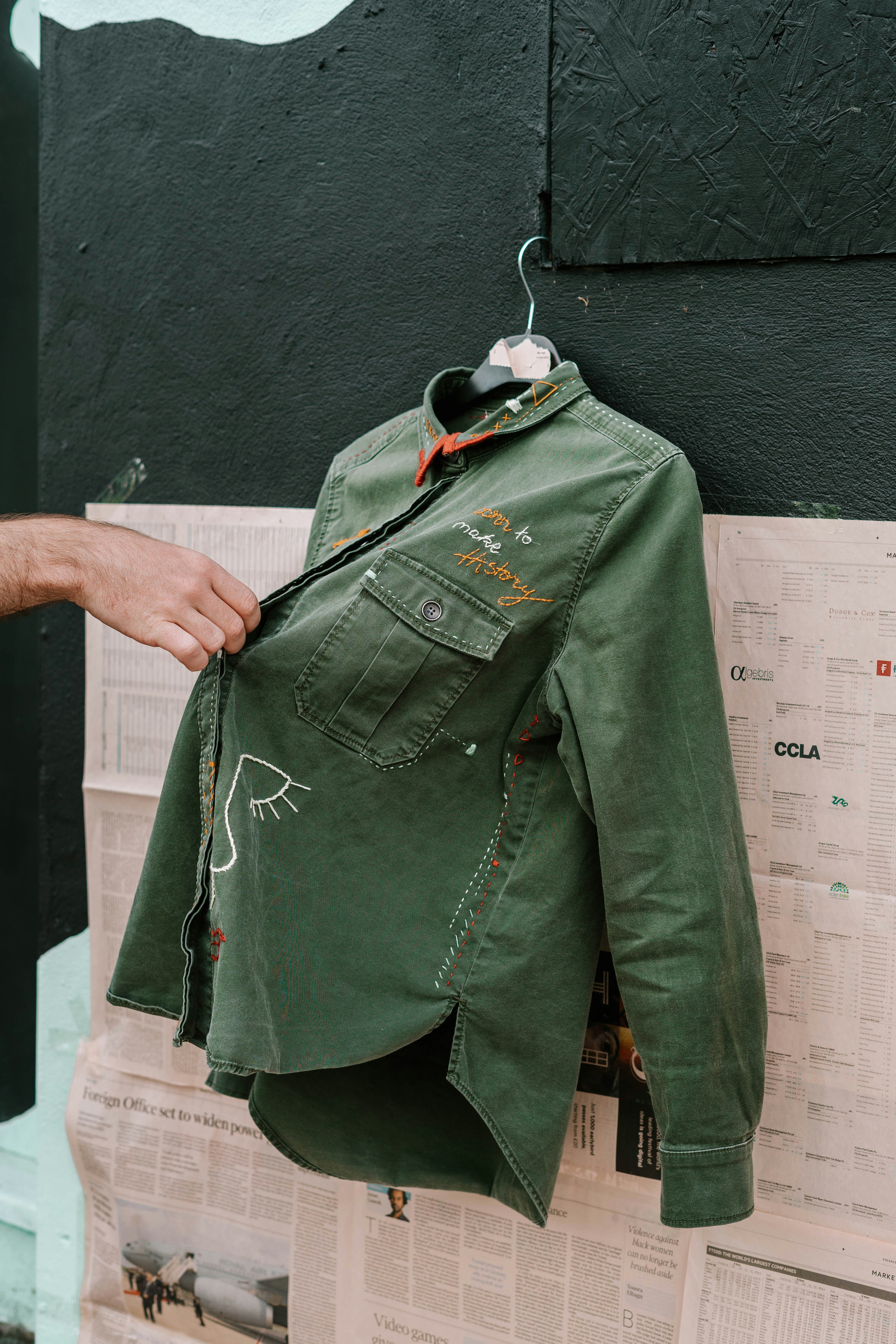 카키색과 올리브 그린의 조합은 밀리터리 무드를 살린 스타일링입니다. 같은 그린 계열이지만 톤이 달라 단조롭지 않으면서도 통일감 있는 룩을 연출할 수 있습니다. 자연스럽고 편안한 느낌을 주어 캐주얼한 일상복으로 완벽합니다.